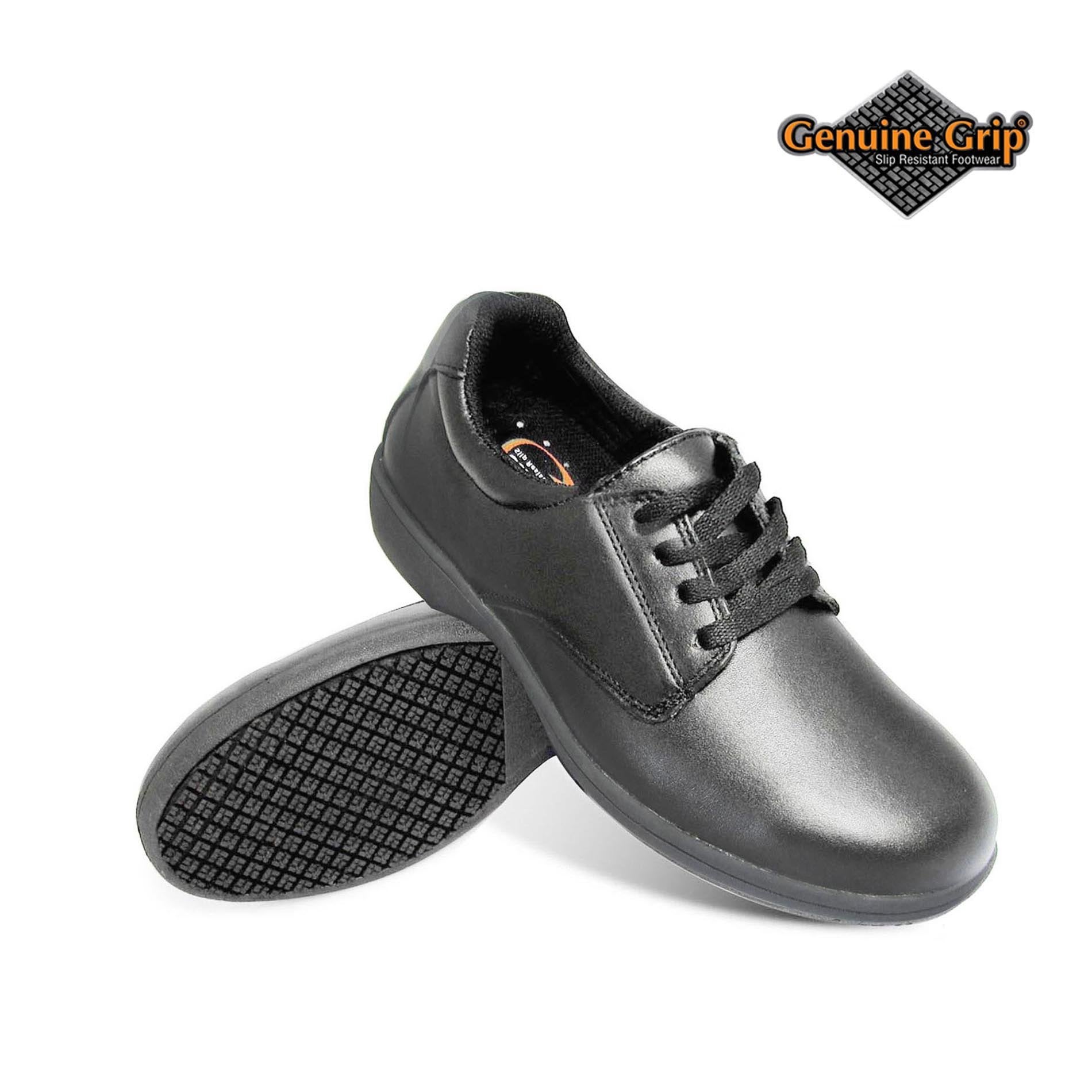 These Genuine Grip comfort oxfords non-slip work shoes feature a Genuine Grip slip-resistant rubber outsole with superior grip. These high-quality work shoes are made of quality leather upper for a clean look. These comfortable work shoes are ideally suited for professionals who tend to stand all day on hard surfaces possibly with water or oil.